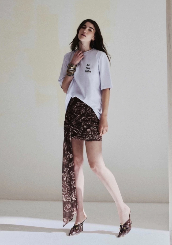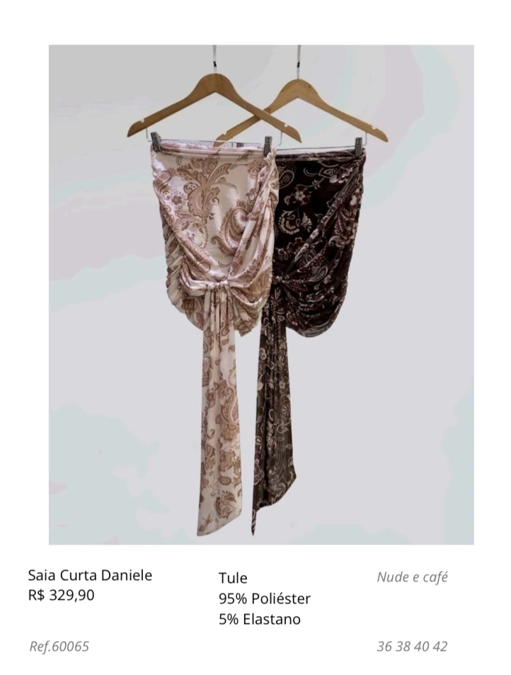 A Saia Daniela Café é a escolha perfeita para quem busca sofisticação e estilo único. Confeccionada em tule delicado, apresenta uma estampa em paisley elegante que confere charme e personalidade.