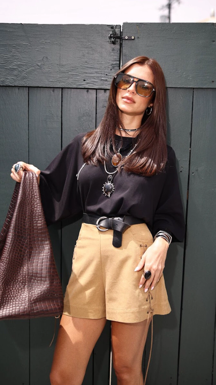 Os Shorts Amanda é a peça perfeita para quem deseja unir a vibe western e boho em um só look! Confeccionados em liocel de alta qualidade, esses shorts possuem cintura intermediária e um trançado na lateral com courinho, proporcionando um toque exclusivo e moderno.